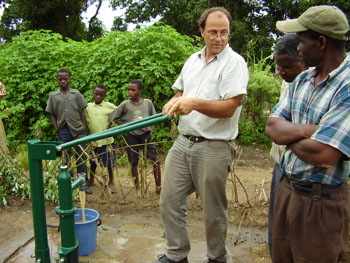 In Zambia have begun to we use a cable tool drill rig developed by Orley Campbell that has been very successful because of it’s portability, low cost, and ease of operation. The one we are using is so effective that we are now looking to built more and distribute them into several other areas of the world.We are also very excited to be able to be the first to "field test" the Awassa pump in Africa. It works on hydraulics and is very different from the pumps that are found broken throughout the world. The Awassa pump is extremely easy to uses and can be repaired in a fraction of the time of a typical pump.